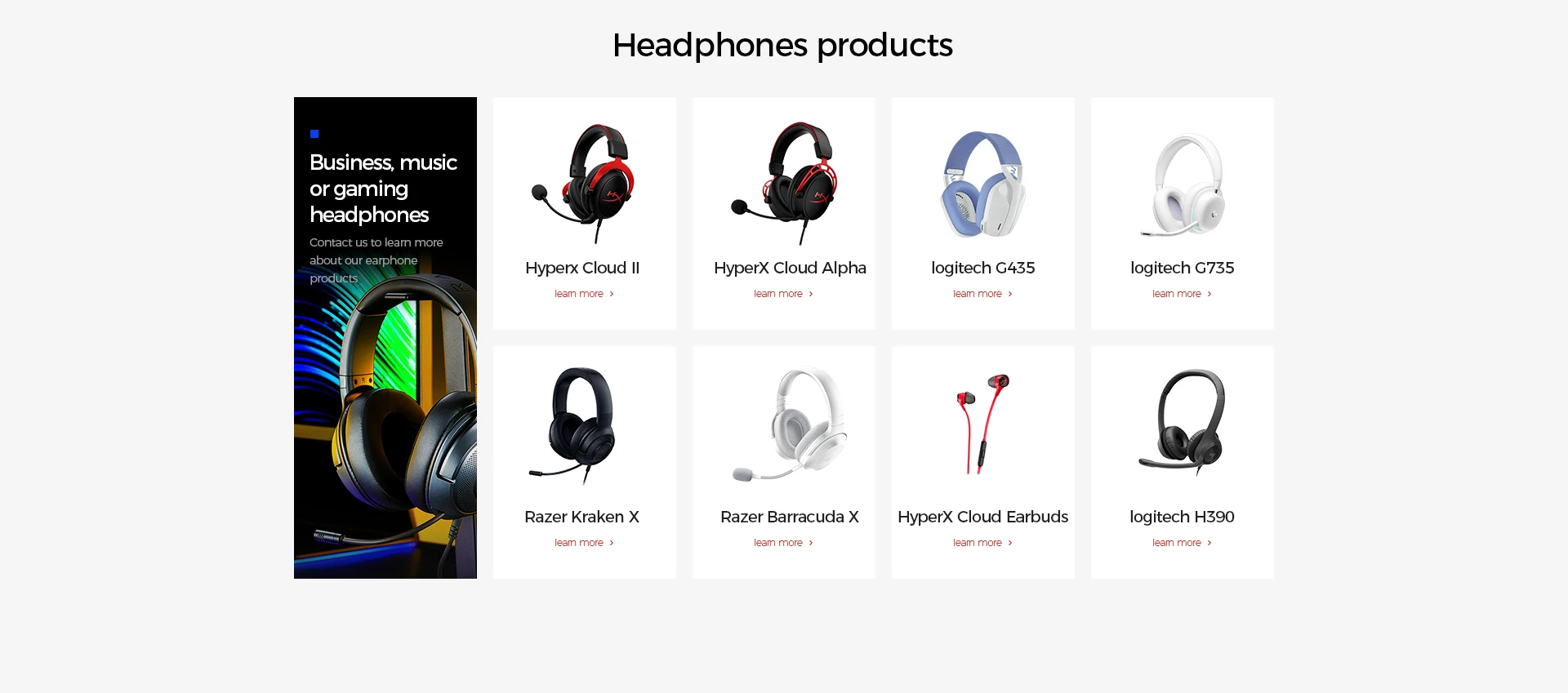 Productos principales:Ratón, teclado, auriculares, altavoces, cámara